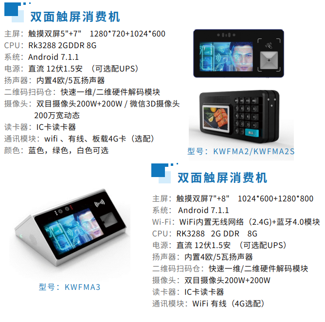 10、穩(wěn)定、可靠、安全的消費(fèi)設(shè)備支持在線、離線等場(chǎng)景,友好的人機(jī)界面,能快速進(jìn)行刷卡、掃碼、刷臉消費(fèi)、原生支付消費(fèi)扣款等。