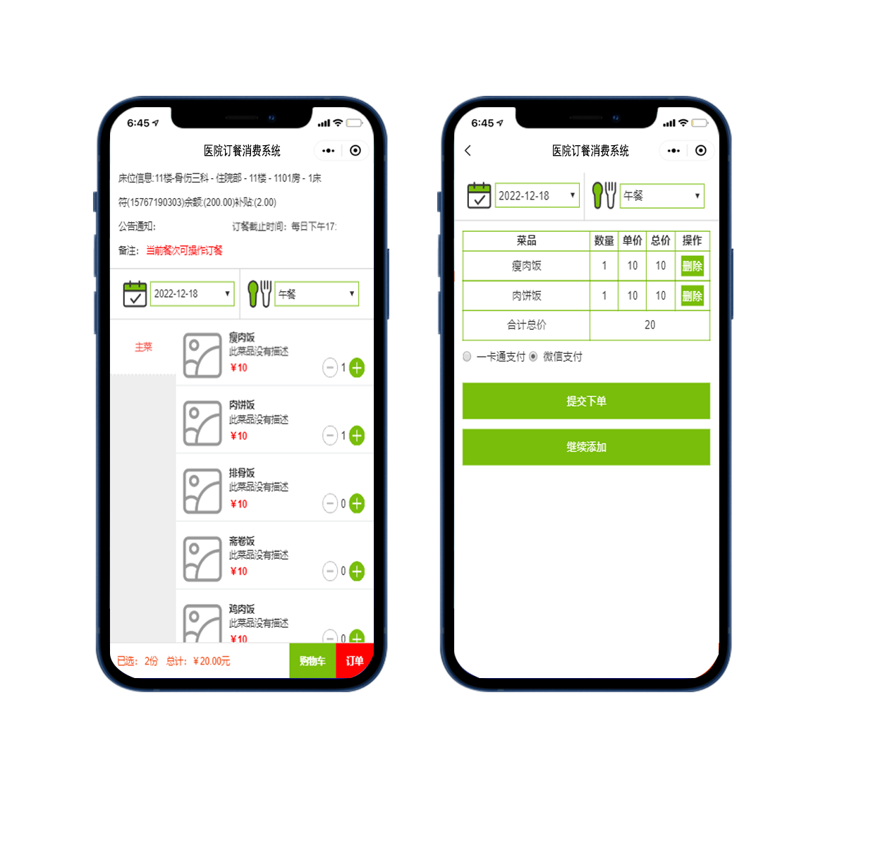 5、支持護(hù)工代點(diǎn)功能,可以通過(guò)手持機(jī)幫助特殊患者訂餐。